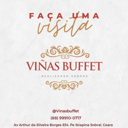 Nós do @vinasbuffet estamos ansiosos para fazer parte do seu grande dia! Fala com a gente e faça seu orçamento personalizado! Tel: (WhatsApp) – 9.9910-0717