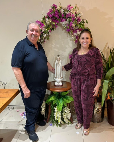 Neste domingo (10/ 11), foi dia de parabenizar o meu precioso cunhado Antônio José. Sua comemoração foi em um momento religioso. Foto, ladeado por nossa senhora de Fátima e sua esposa Laênia Macêdo. Bençãos de paz, saúde e longevidade. Abraço de luz do seu cunhado César Macêdo.