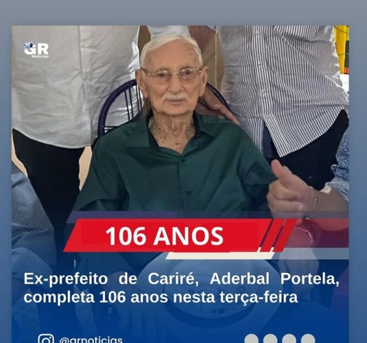 É com imensa alegria que faço o registro da comemoração dos 106 Anos do ex-prefeito da cidade do Cariré/CE, Sr. Aderbal Portela. Que nosso bom Deus lhe faça feliz com saúde e longevidade. Abraço carinhoso do seu admirador César Macêdo.