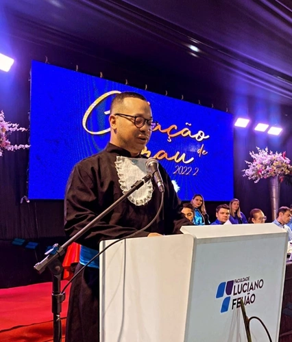 O formando de Psicologia Jucelino Tomás Filho foi o representante do curso de Psicologia, fez um lindo discurso de agradecimento ao corpo docente da Faculdade Luciano Feijão. (Fotos: Reprodução)