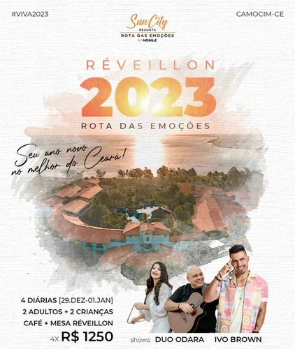 O tradicional réveillon Rota das Emoções no Resort Sun City em Camocim-CE, está com as atrações confirmadas, Duo Odara e Ivo Brown é que vão animar a noite de passagem para 2023.