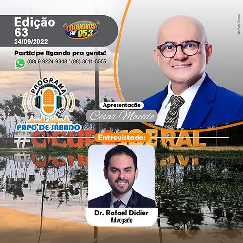 O meu entrevistado de hoje, no nosso famoso programa “Papo de Sábado”, foi o advogado Dr. Rafael Didier, ele, que foi um dos homenageados recebendo o Troféu Homens de Sucesso 2022. Contou um pouco da sua trajetória profissional como advogado e empresário, agradeço a todos meus patrocinadores, ouvintes e minha dedicada equipe. (Fotos: por Blog […]
