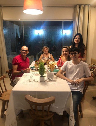 Em seguida fui na linda residência do casal Reginaldo Parente e Daniela Costa, onde fizemos nosso tradicional brinde de champanhe. Foi servido um delicioso jantar. Com a presença da matriarca Dona Umbelina Fonseca, seus filhos, Daniel, Clarinha e o seu genro Vinícius. Fotos: Reprodução