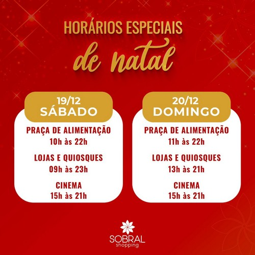 Horários especiais de natal no Sobral Shopping