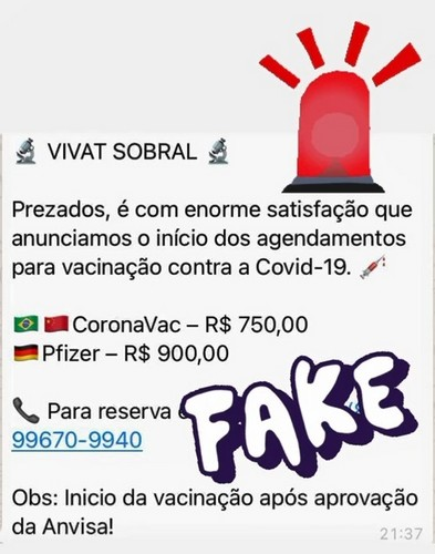 A Vivat Clínica e Vacinação não está vacinando por enquanto ninguém, estão usando o nome desta conceituada Clínica com “FAKE” e usando um falso número de celular pra pedir dinheiro para a vacina. Não caiam nesse golpe! Ninguém escapa de vigarista. Nenhuma clínica particular do Brasil, tem autorização para vacinar ninguém. Vídeo: Reprodução