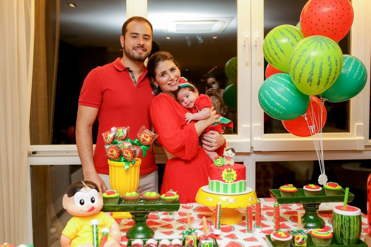 A princesinha Maria Thereza ganhou uma linda festa dos pais Oswaldinho Duarte e Nathalia Escóssia, pela comemoração dos seus 2 meses. O tema da decoração foi Magali, a personagem que adora melancia. Com a presença só dos familiares. Fotos: Reprodução
