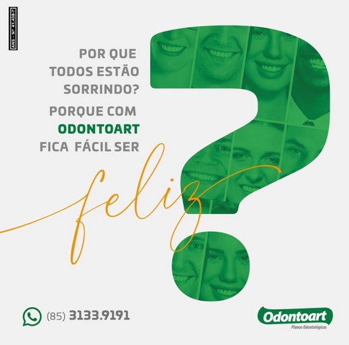 Fica fácil ser feliz com um sorriso saúdavel. A saúde e bem estar do seu sorriso é a missão da Odontoart! Vem ser Odontoart, vem ser feliz com a gente! Fale já com um de nosso atendentes através de nosso WhatsApp (85) 3133-9191