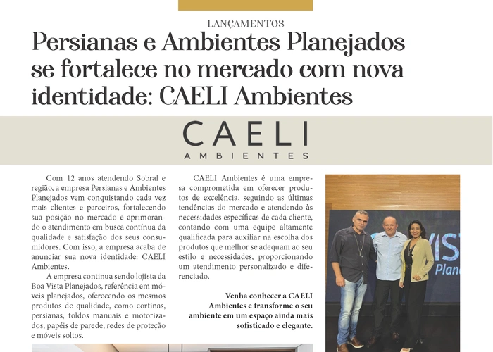Confira as páginas da conceituada empresa Caeli Ambientes, na nossa mais nova edição da Revista César Macêdo Acontece.