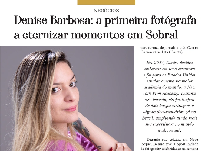 Confira a página da conceituada fotógrafa Denise Barbosa, na nossa mais nova edição da Revista César Macêdo Acontece.