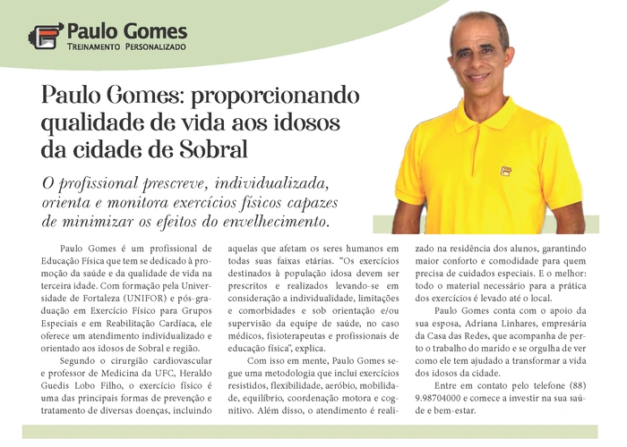 Confira a página do profissional de Educação Física Paulo Gomes, na nossa mais nova edição da Revista César Macêdo Acontece.