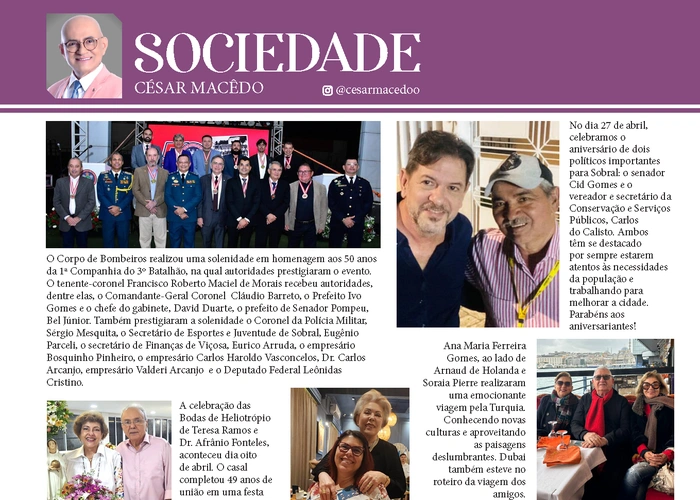 Confira a página Sociedade, na nossa mais nova edição da Revista César Macêdo Acontece. (Artes: por Felipe Mendes)