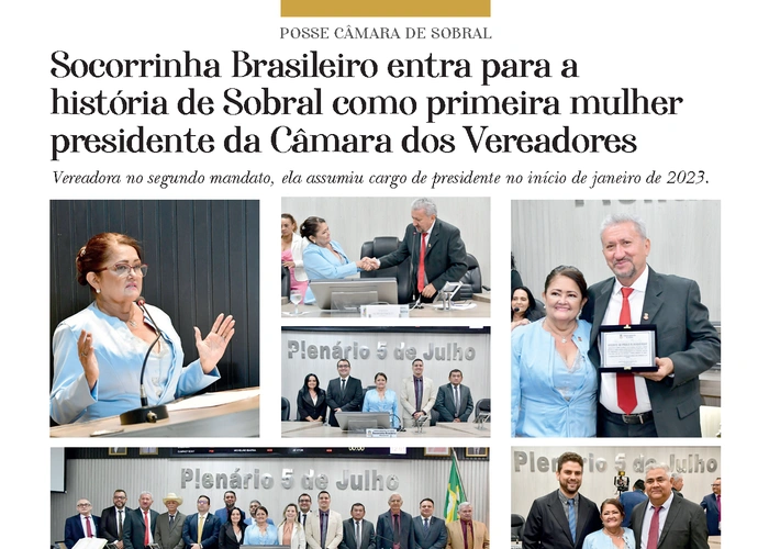 Confira a página da Posse de Socorrinha Brasileiro como presidente da Câmara Municipal de Sobral, na nossa nova edição da Revista César Macêdo Acontece. (Artes: por Felipe Mendes)