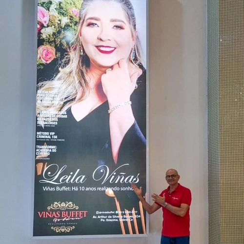 Fiquei até emocionado quando me deparei com esse lindíssimo painel com a foto da empresária Leila Viñas, que foi capa da Revista César Macêdo Acontece! Uma linda homenagem aos 10 Anos do Viñas Buffet.