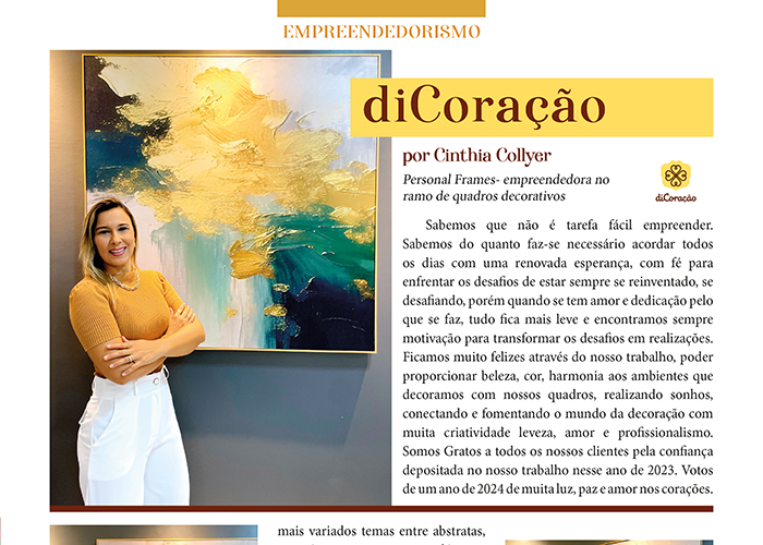 Confira a página da empresária Cinthia Collyer da DiCoração, na nossa 6ª Edição da Revista César Macêdo Acontece. (Diagramação: por Sáulus Cordeiro)