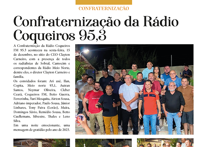 Confira a página da Confraternização da Rádio Coqueiros FM 95,3, na nossa 6ª Edição da Revista César Macêdo Acontece. (Diagramação: por Sáulus Cordeiro)