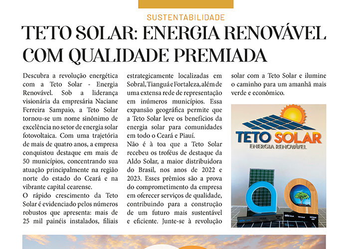 Confira a página da conceituada empresa Teto Solar, na nossa 6ª Edição da Revista César Macêdo Acontece. (Diagramação: por Sáulus Cordeiro)