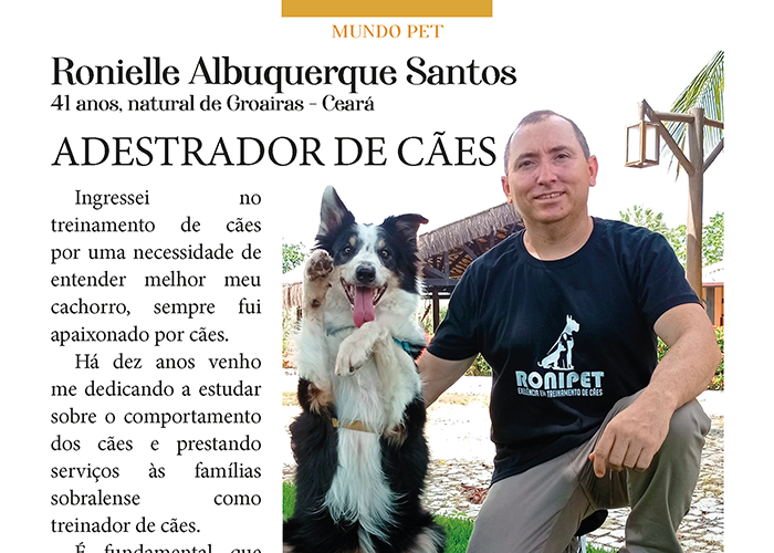 Confira a página do adestrador de cães Ronielle Albuquerque, na nossa 6ª Edição da Revista César Macêdo Acontece. (Diagramação: por Sáulus Cordeiro)
