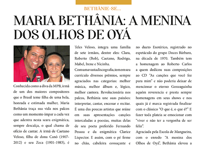 Confira a página com Alexandre Marinho e Maria Bethânia, na nossa 6ª Edição da Revista César Macêdo Acontece. (Diagramação: por Sáulus Cordeiro)