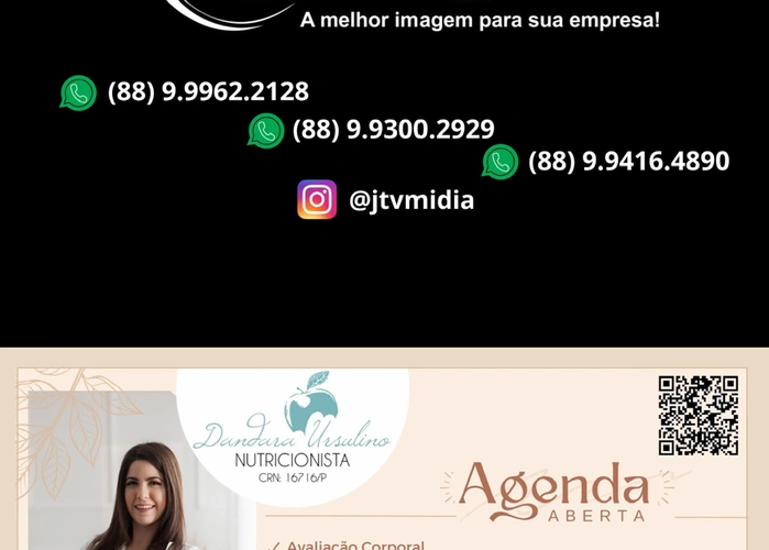 Confira a página da empresa JTV Midia e da nutricionista Dandara Ursulino, na nossa mais nova edição da Revista César Macêdo Acontece. (Diagramação: por Felipe Mendes)