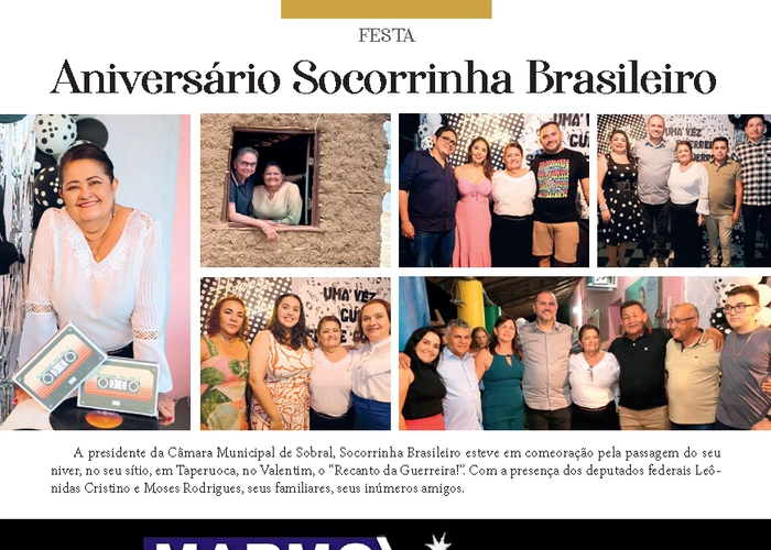 Confira a página do Aniversário de Socorrinha Brasileiro e Marmovidros, na nossa mais nova edição da Revista César Macêdo Acontece. (Diagramação: por Felipe Mendes)
