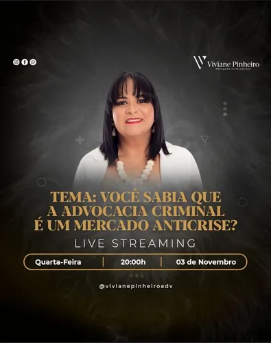 (Foto: Reprodução) Nesta quarta-feira (3), as 20h tem live com a Advogada Criminalista Dra. Viviane Pinheiro, se liga!