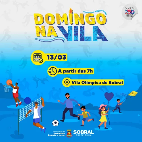 (Foto: Reprodução) A Prefeitura de Sobral, por meio da Secretaria da Juventude, Esporte e Lazer (Secjel), realizou, neste domingo (13/03), na Vila Olímpica de Sobral, localizada no bairro Alto da Expectativa, a primeira edição do projeto Domingo na Vila. A ação acontecerá mensalmente, sempre aos domingos, a partir das 7h. Com a realização de diversas […]