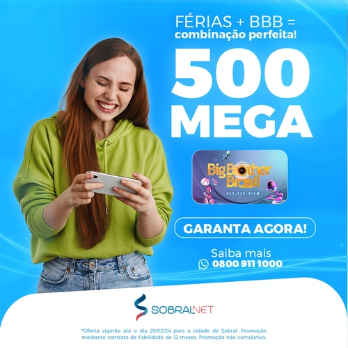 Férias + BBB = Combinação perfeita! 🤩 Contrate o plano de 500 MEGA e garanta já o seu acesso a casa mais vigiada do Brasil. Saiba mais em 🟢📞 0800 911 1000. #sobralnet#sobral#ferias#bbb#conexão
