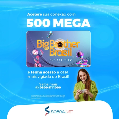 Hey, Brother! Acelere sua conexão com 500 MEGA 🚀 e tenha o BBB 24 horas por dia, ficando por dentro de tudo que acontece na casa mais vigiada do Brasil! 🏡📹 Saiba mais em 🟢📞 0800 911 1000. SobralNet, conectando você ao mundo! 🌎 #sobralnet#sobral#férias#BBB#conexão“