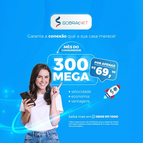 Chegou o Mês do Consumidor na SobralNet! 🌟 Aproveite nossa promoção especial: 300 MEGA por apenas R$ 69,99! 💻🚀 Não perca tempo! Garanta já a melhor conexão com o melhor preço! Saiba mais em 📞🟢 0800 911 1000 #sobral#sobralnet#internet#promoção#mêsdoconsumidor#300mega