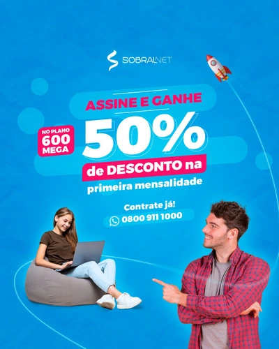 Navegue, transmita e jogue no seu ritmo com a conexão SobralNet! 😎 Ganhe 50% de desconto na primeira mensalidade do plano de 600 MEGA! 🚀 Não perca essa oportunidade, pois a promoção é por tempo limitado. ⚠️ Entre em contato via WhatsApp 📞🟢0800 911 1000 e assine agora! #sobralnet #sobral #velocidade #conexao