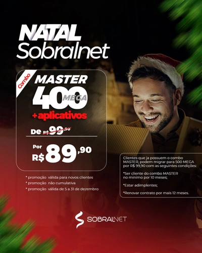 Durante este mês o nosso Plano MASTER está por apenas R$ 89,90. É isso mesmo, garanta máxima conexão e vários aplicativos inclusos, pra você se divertir e aproveitar. Não fique de fora! Vem ser SobralNet!🎄 *promoção válida para novos clientes; *promoção não cumulativa; *promoção válida de 5 à 31 de dezembro. Mais informações ligue ou mande […]