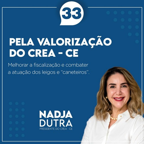 A engenheira civil Nadja Dutra, candidata à Presidente do Crea Ceará , é professora universitária, com mestrado em engenharia de produção e doutorado em transportes. É professora da universidade federal do Ceará , tem formação acadêmica e experiência profissional para colocar o CREA CE a serviço do profissional da engenharia e propor políticas públicas que […]