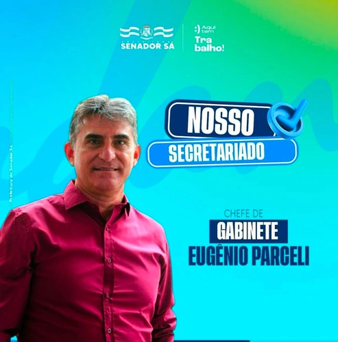 Meu precioso amigo Eugênio Parceli, está compondo à equipe da prefeitura de Senador Sá, como chefe de gabinete do prefeito Bel Júnior. Parabéns! Uma excelente escolha!