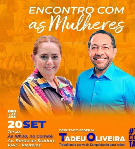 Nesse terça-feira dia 20 as 18h30, Dra. Rosangela Oliveira estará liderando o Encontro com Mulheres no comitê do candidato a Deputado Federal Dr. Tadeu Oliveira com o número 2244. O comitê fica localizado na Av. Barão de Stuart, 1043 – Bairro Meirelles em Fortaleza-CE. Estamos juntos com a certeza dessa vitória 2244!