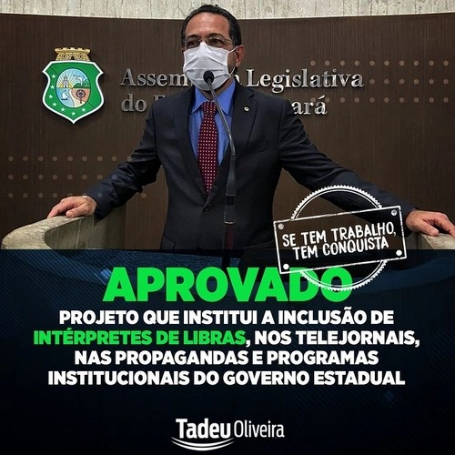 (Foto: Reprodução) Deputado Estadual Dr. Tadeu Oliveira tem mais um projeto aprovado na Assembleia Legislativa. Dessa vez é a Inclusão de intérpretes de libras, nos telejornais, nas propagandas e nos programas institucionais do Governo Estadual. “O Projeto 182/2020 representa uma conquista importante para os deficientes auditivos, pois vai instituir a inclusão de intérpretes de Libras, […]