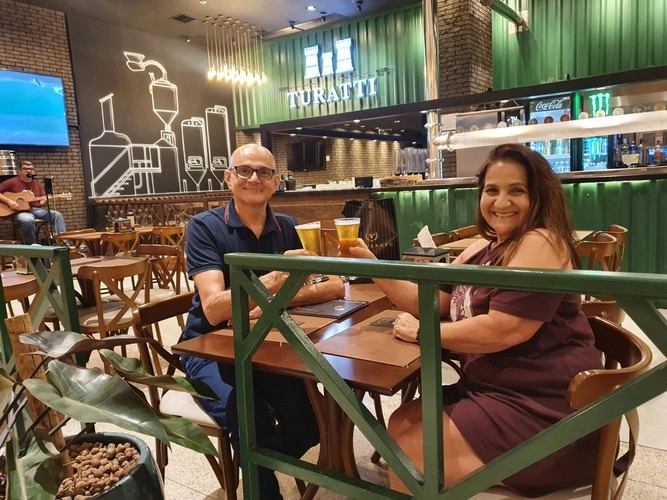 (Foto: Reprodução) Foi na companhia de Marline Chaves estive tomando um delicioso chopp no Turatti. Nosso encontro é só alegria!
