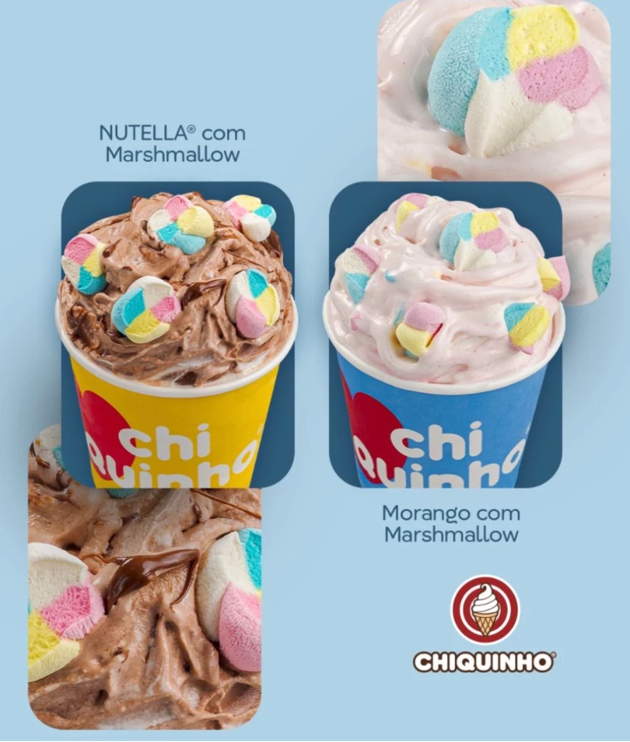 A Linha Kids dos Mini Shake Mix® conquista todos os corações! Disponível nas opções com NUTELLA® ou Morango, sempre acompanhados de um marshmallow fofinho.#Chiquinho #SeuSorvete #LinhaKids #MiniShakeMix #NUTELLA #Morango #Marshmallow