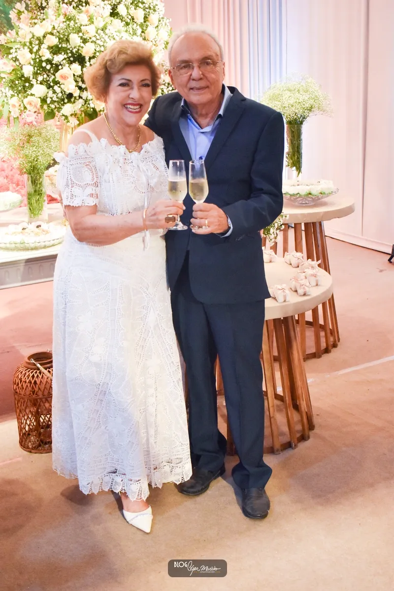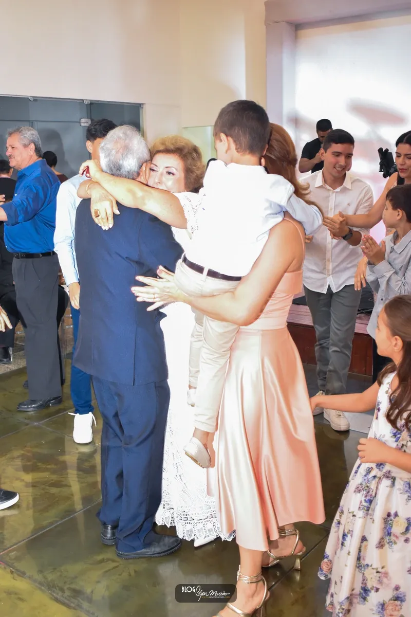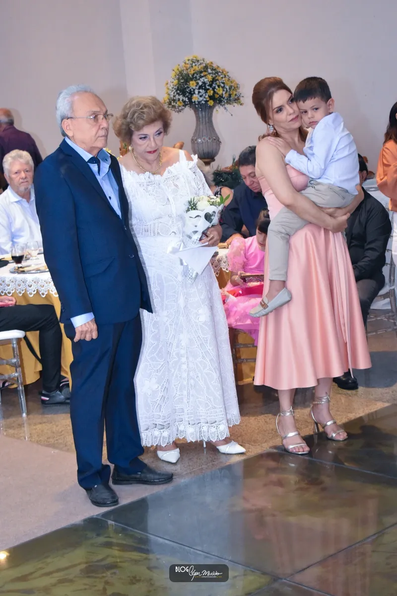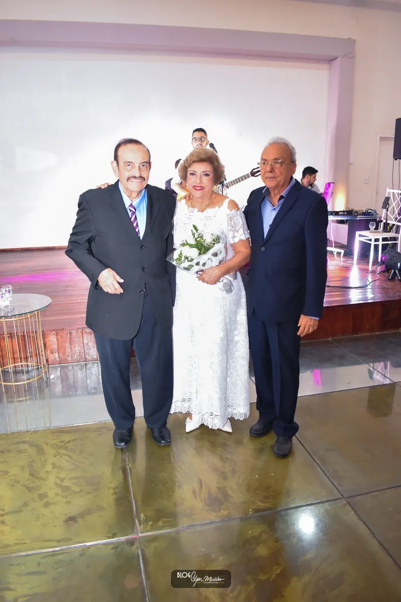 Aconteceu na noite desta sexta feira (16) no buffet Dona Flor o jantar dançante pela comemoração das bodas de ouro do casal de Dr. Afrânio Fonteles e Tereza Ramos. Que por sinal estavam lindíssimos. Dr. Afrânio usou um moderno terno azul marinho e dona Tereza Ramos usou um belíssimo vestido branco de renda renascença feito em Pesqueira-Pernambuco.