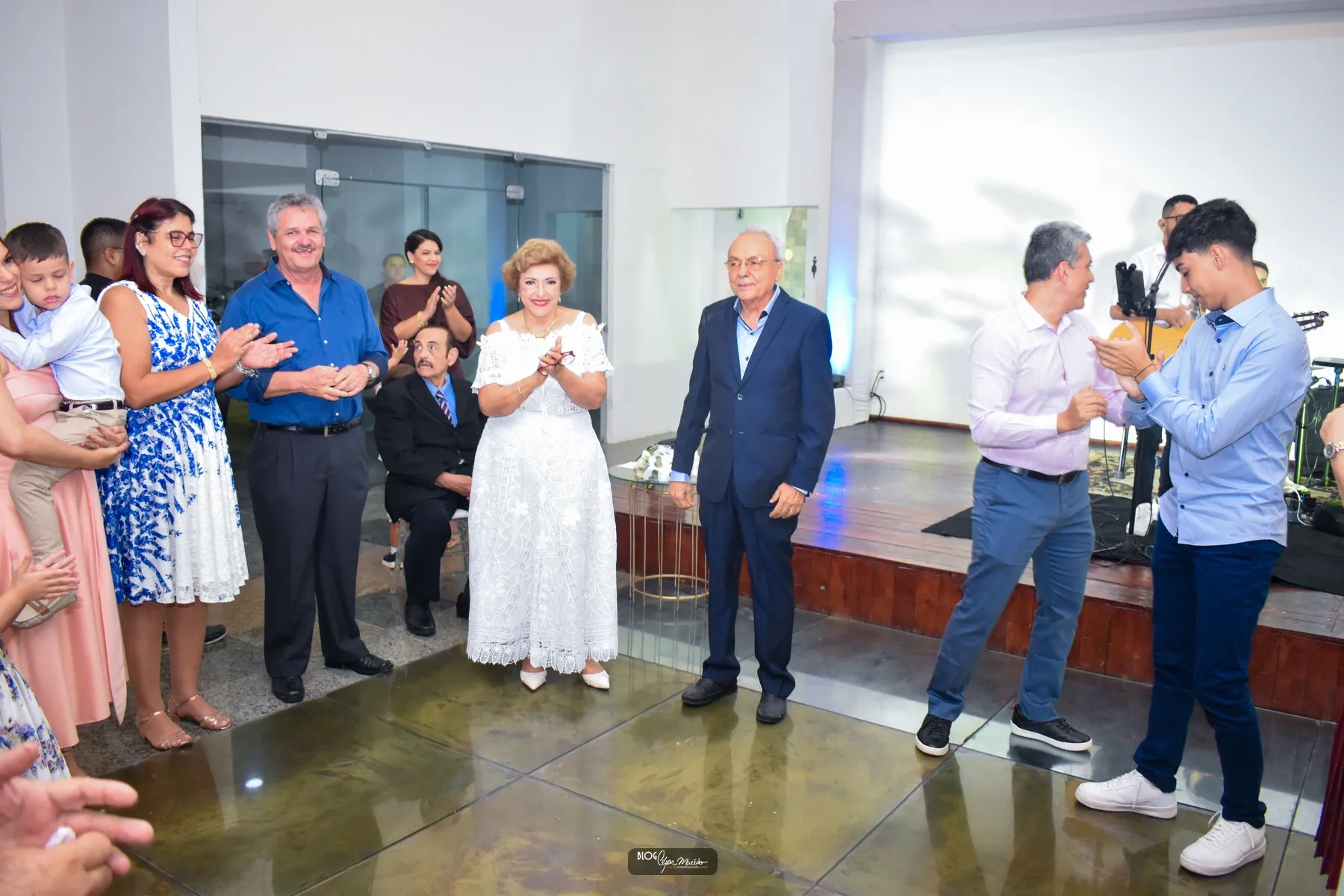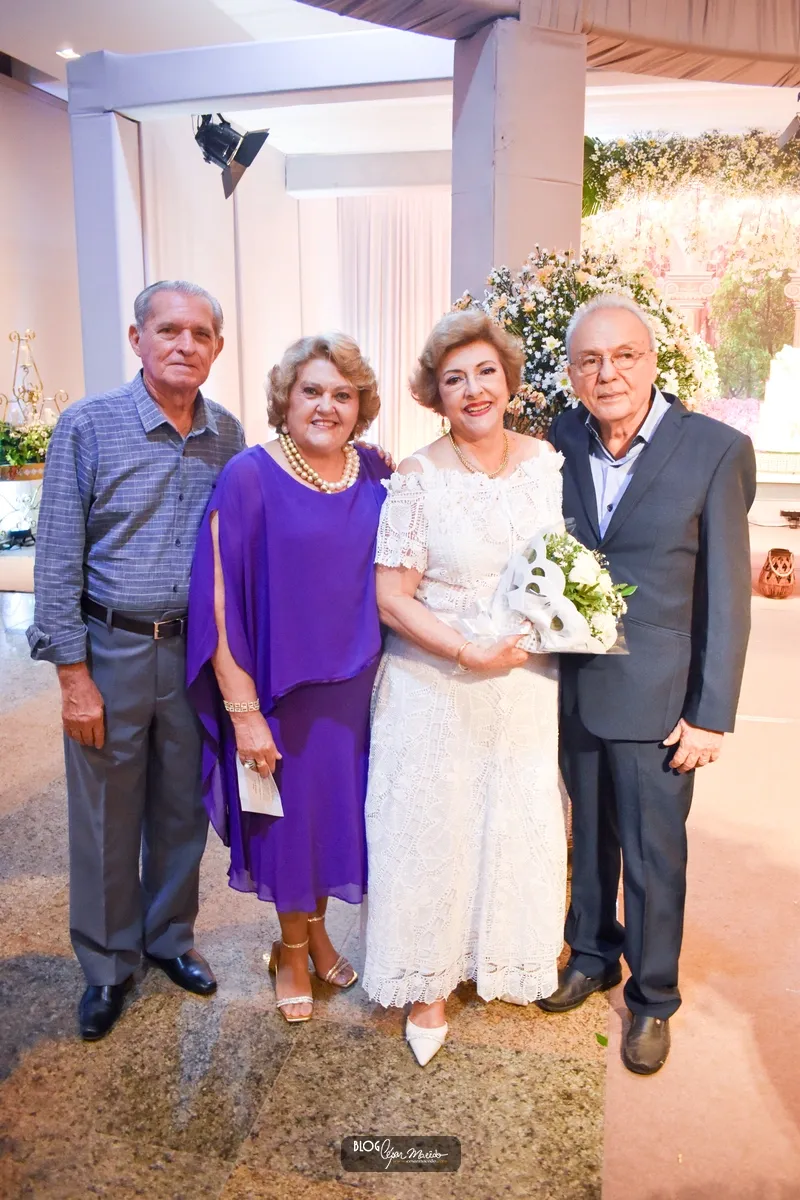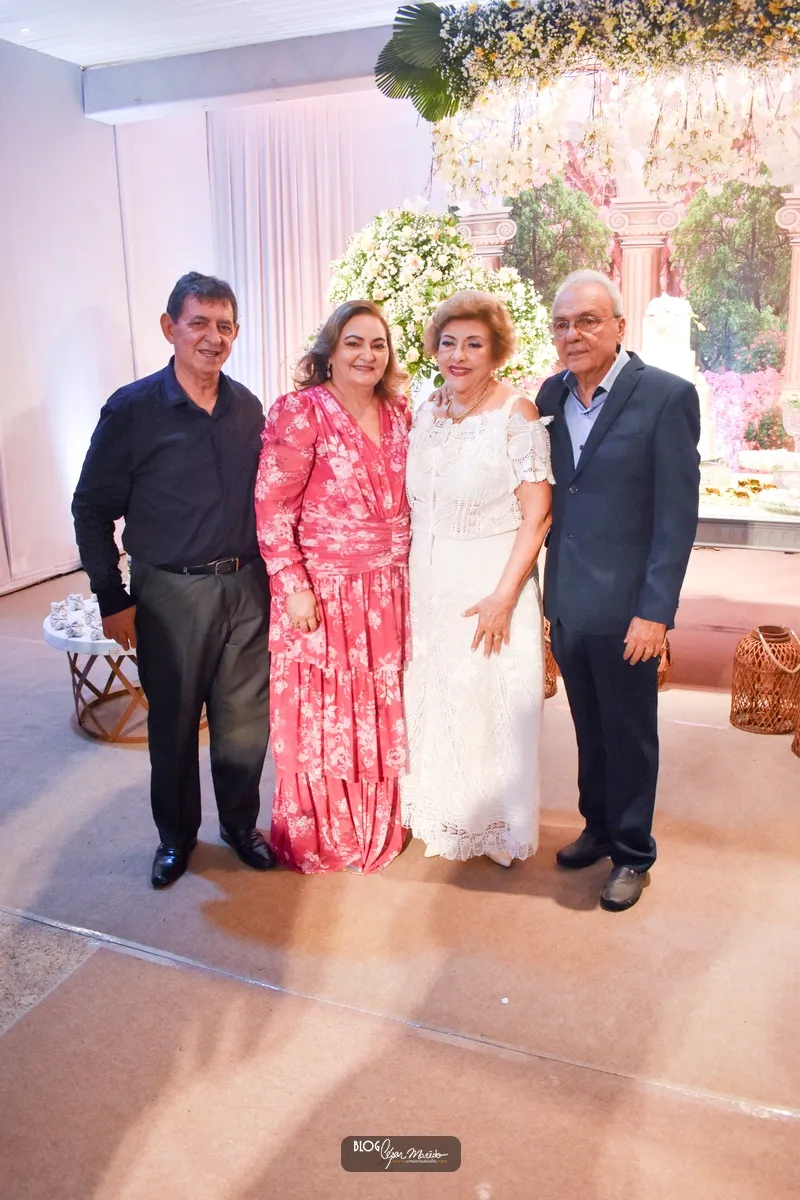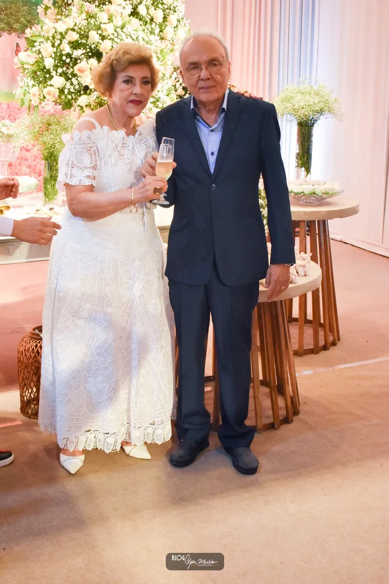 Aconteceu na noite desta sexta feira (16) no buffet Dona Flor o jantar dançante pela comemoração das bodas de ouro do casal de Dr. Afrânio Fonteles e Tereza Ramos. Que por sinal estavam lindíssimos. Dr. Afrânio usou um moderno terno azul marinho e dona Tereza Ramos usou um belíssimo vestido branco de renda renascença feito em Pesqueira-Pernambuco.