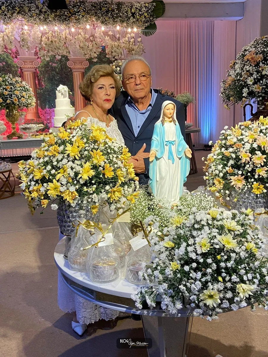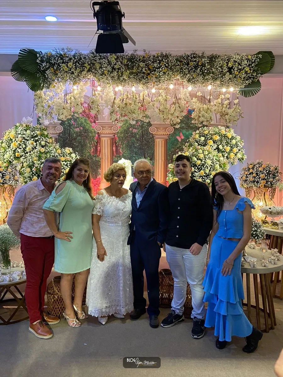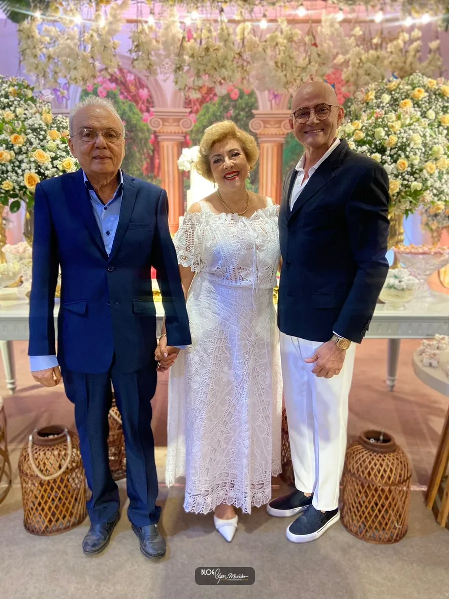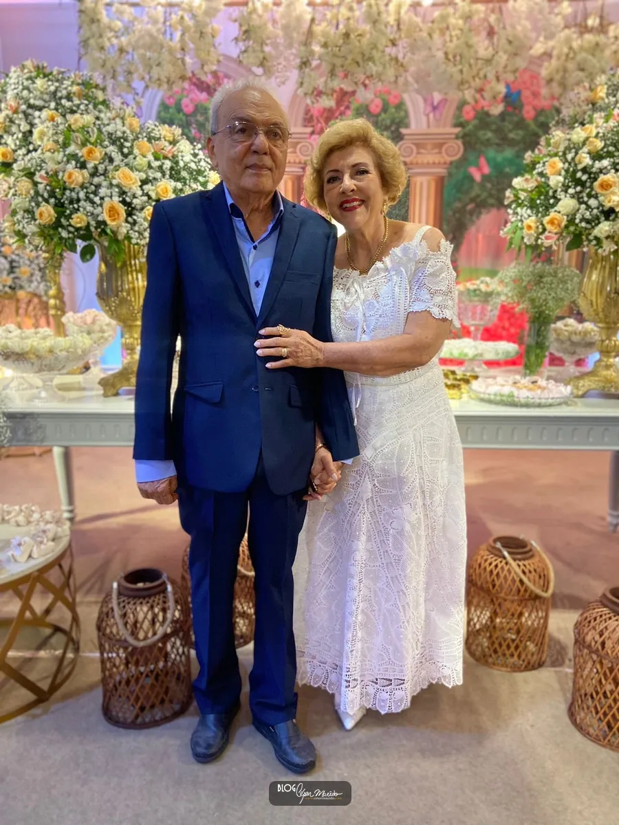Aconteceu na noite desta sexta feira (16) no buffet Dona Flor o jantar dançante pela comemoração das bodas de ouro do casal de Dr. Afrânio Fonteles e Tereza Ramos. Que por sinal estavam lindíssimos. Dr. Afrânio usou um moderno terno azul marinho e dona Tereza Ramos usou um belíssimo vestido branco de renda renascença feito em Pesqueira-Pernambuco.