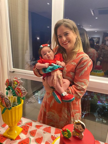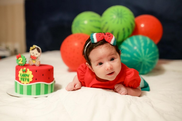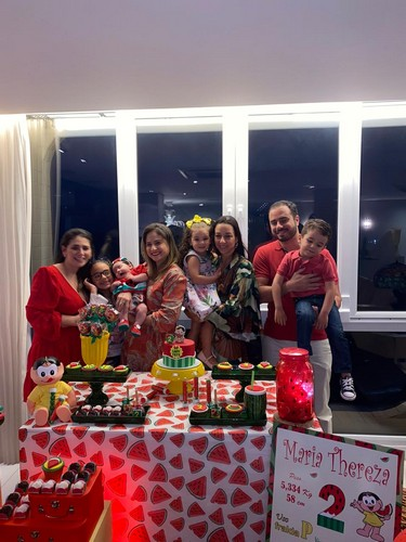 O tema da decoração foi Magali, a personagem que adora melancia. Com a presença só dos familiares.