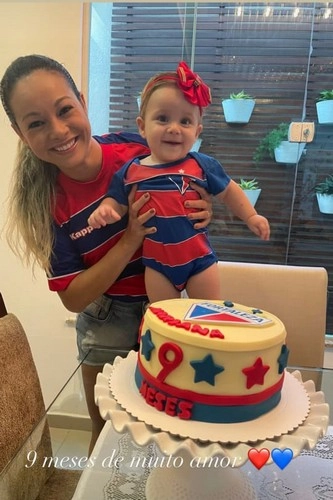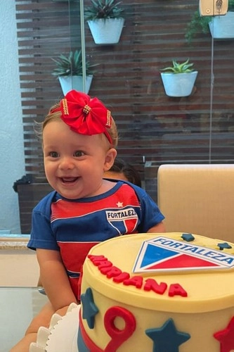 Olha só a carinha de felicidade de Mariana Macêdo na Comemoração dos seus 9 meses. Com o carinho dos pais Mário e Celina Macêdo, com uma linda decoração em homenagem ao time do Fortaleza. Ela, que já é torcedora fiel.