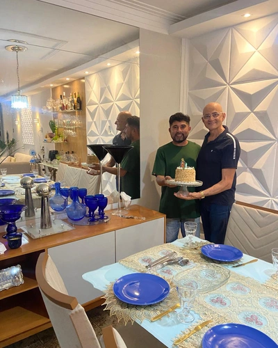 Na ocasião foiram servidos salgadinhos de entrada e um maravilhoso jantar com um delicioso bolo de sobremesa, com direito ao tradicional “… parabéns pra você… “.