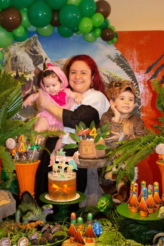A comemoração teve uma linda decoração com tema Dinossauros e contou com a presença apenas dos familiares.