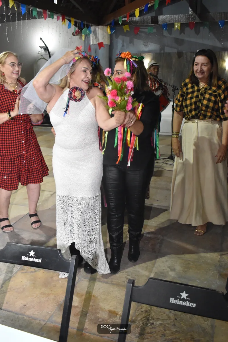 A festa foi pra lá de animada com a noiva (Laleta) em sua entrada e direito a jogar o buquê de flores (ganhadora Lilia Neves) e o noivo Areo Aragão.