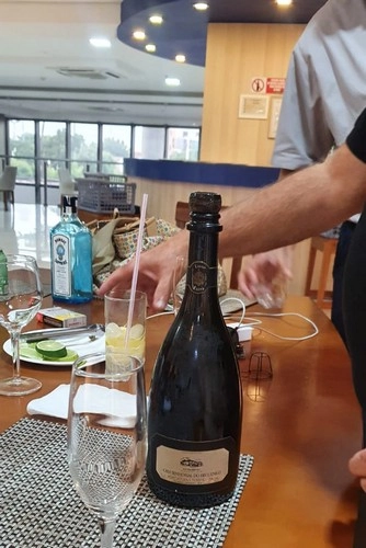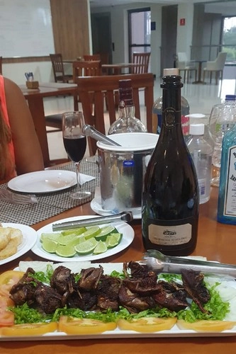 Foram servidos uma deliciosa lagosta, filé, torradas e finas bebidas.