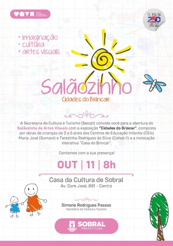 Essa ação é um momento especial para a Primeira Infância em Sobral e vai para além de uma exposição de obras infantis. O momento também será a abertura da Casa do Brincar, um projeto que vai encher a Casa da Cultura de brincadeiras só para as crianças durante o mês de outubro.