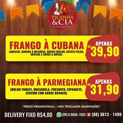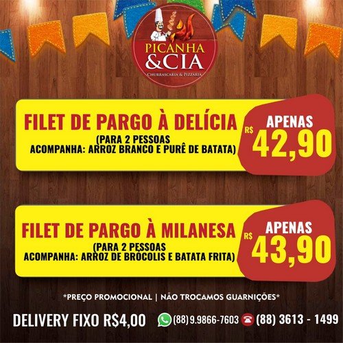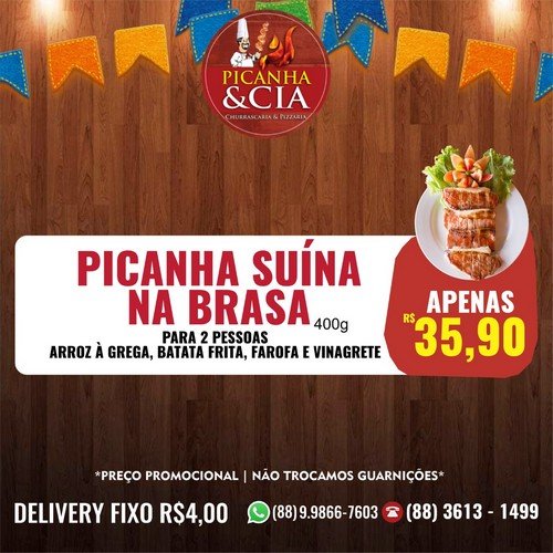 Escolha o seu prato e faça já o seu pedido pelo Delivery. A qualidade e o preço são indiscutíveis! Picanha & Cia!