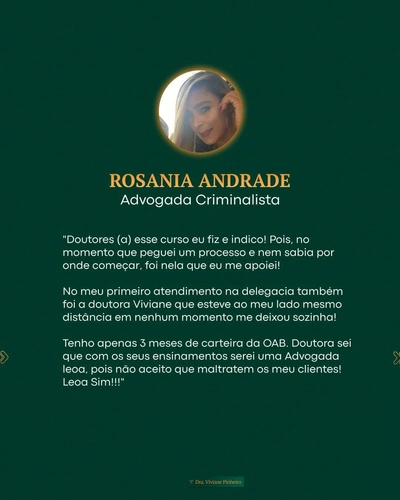 Me sinto muito agradecida e honrada de fazer parte da vida de tantos Advogados e Advogadas criminalistas que buscam se aperfeiçoar e se tornar bons profissionais.