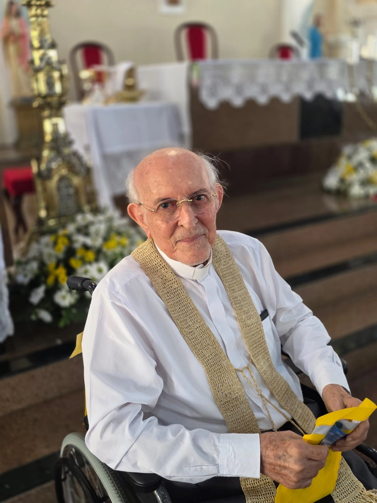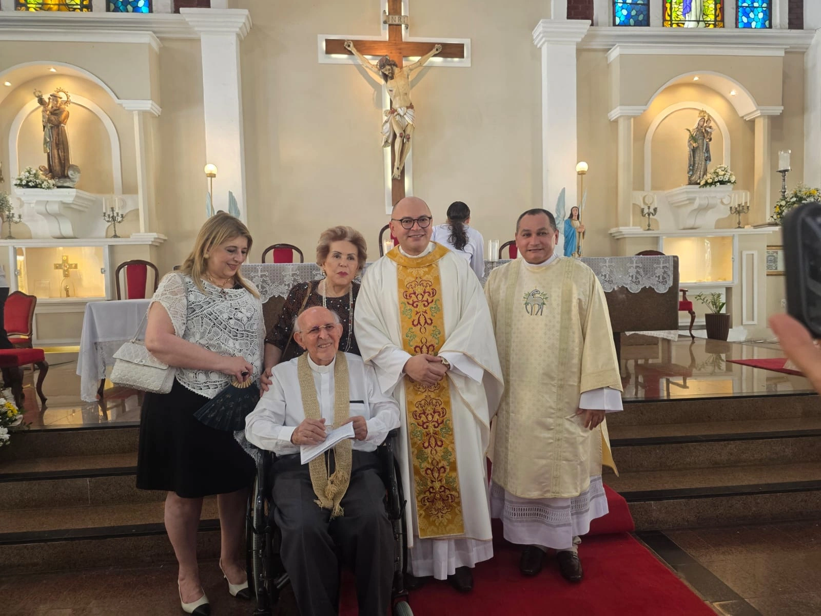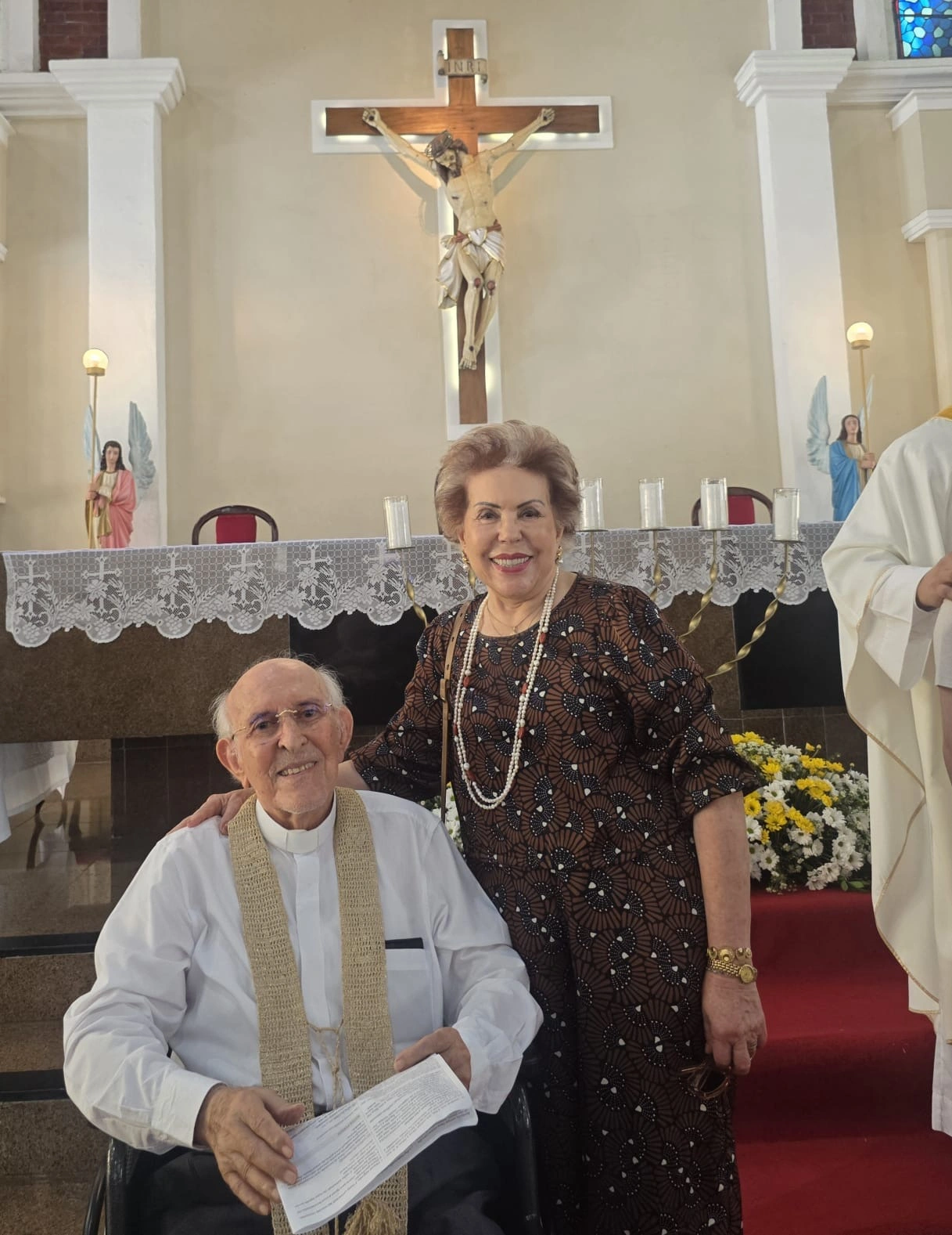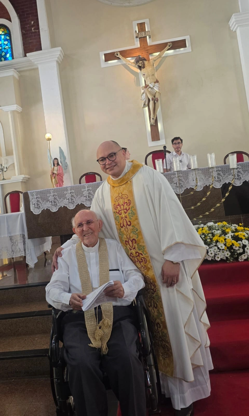 Domingo de Páscoa. Ressurreição de Cristo. Na Missa das 11h na Paróquia da Paz foi feita uma linda, emocionante e aplaudida homenagem ao Monsenhor Manfredo Ramos pelo aniversário de 69 anos de sua Ordenação Sacerdotal. Pe. Marcelânio, o celebrante, foi aluno e orientado por Monsenhor Manfredo, que o recordou dos mais de 40 anos dedicados ao Seminario da Prainha onde Monsenhor Manfredo foi responsável pela formação eclesiástica de centenas de sacerdotes.